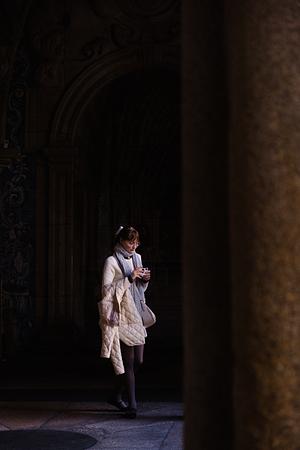 Girl in white in Porto Cathedral cloisters